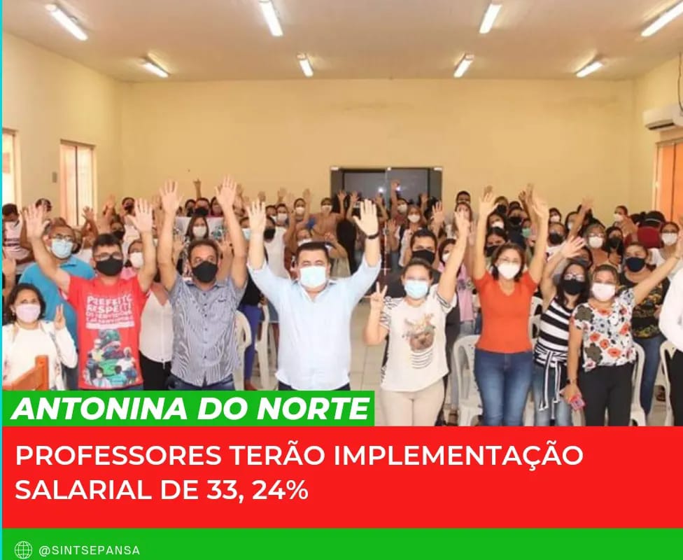 O Presidente do Sindicato SINTSEPANSA, ILTEMAR MARTINS falou que semana passada esteve procurando respostas dos ofícios protocolados que tratar da implementação Salarial para todas as categorias ( Piso Salarial do Magistério 33,24%, Piso dos Agentes Saude e Agentes de Endemias no valor de R$1.750,00 e reajuste para os demais servidores com vencimentos acima do mínimo no percentual de 16,16%) em todos os municípios, inclusive em Antônina conversamos com o Prefeito Antonio Filho, e na ocasião ele havia informado que estava analisando os impactos financeiros, mas hoje a notícia foi a garantia da implementação salarial dos 33,24% para os Professores, pois vai está sendo encaminhado amanhã dia (16/02) para Câmara de Vereadores o Projeto de Lei que trata do Piso do Magistério, portanto todos nós que fazemos o Sindicato SINTSEPANSA, Parabenizamos a Todos(as) que fazem Educação de Antônina do Norte !!