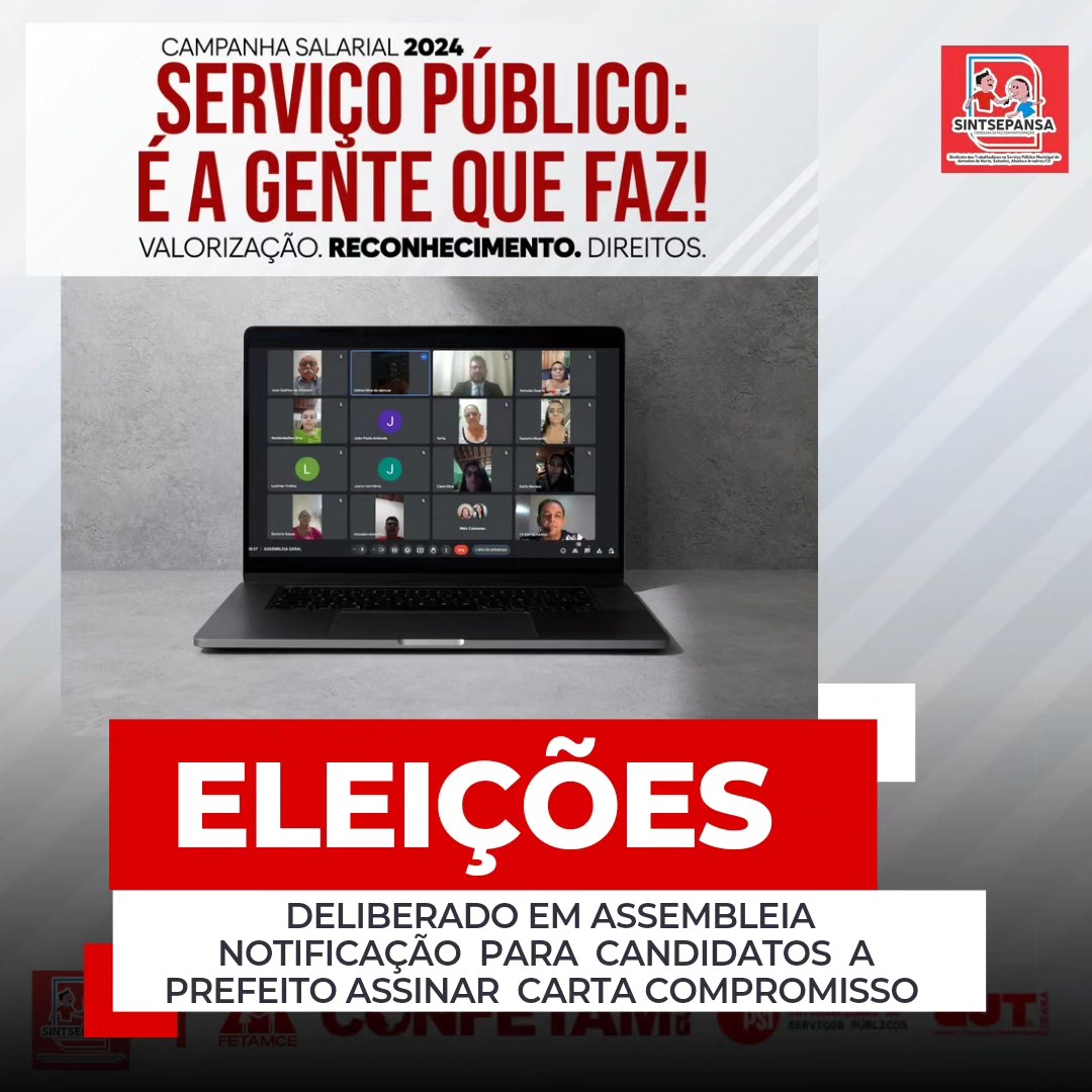 Em assembleia foi colocado em votação e aprovado por unanimidade o ponto da pauta que trata do encaminhamento de ofícios para todos os candidatos a Prefeito dos municípios de ANTONINA DO NORTE, SABOEIRO, AIUABA E ARNEIROZ, para apresentar a Plataforma da FETAMCE e da CUT das Eleições 2024 e a assinatura de Carta Compromisso, por parte dos candidatos a Prefeitos. Na ocasião também foi deliberado que esses momentos seriam tratados com diretoria do Sindicato e com cada candidato em momentos diferentes, tal decisão se deu em razão do acirramento politico em cada município.